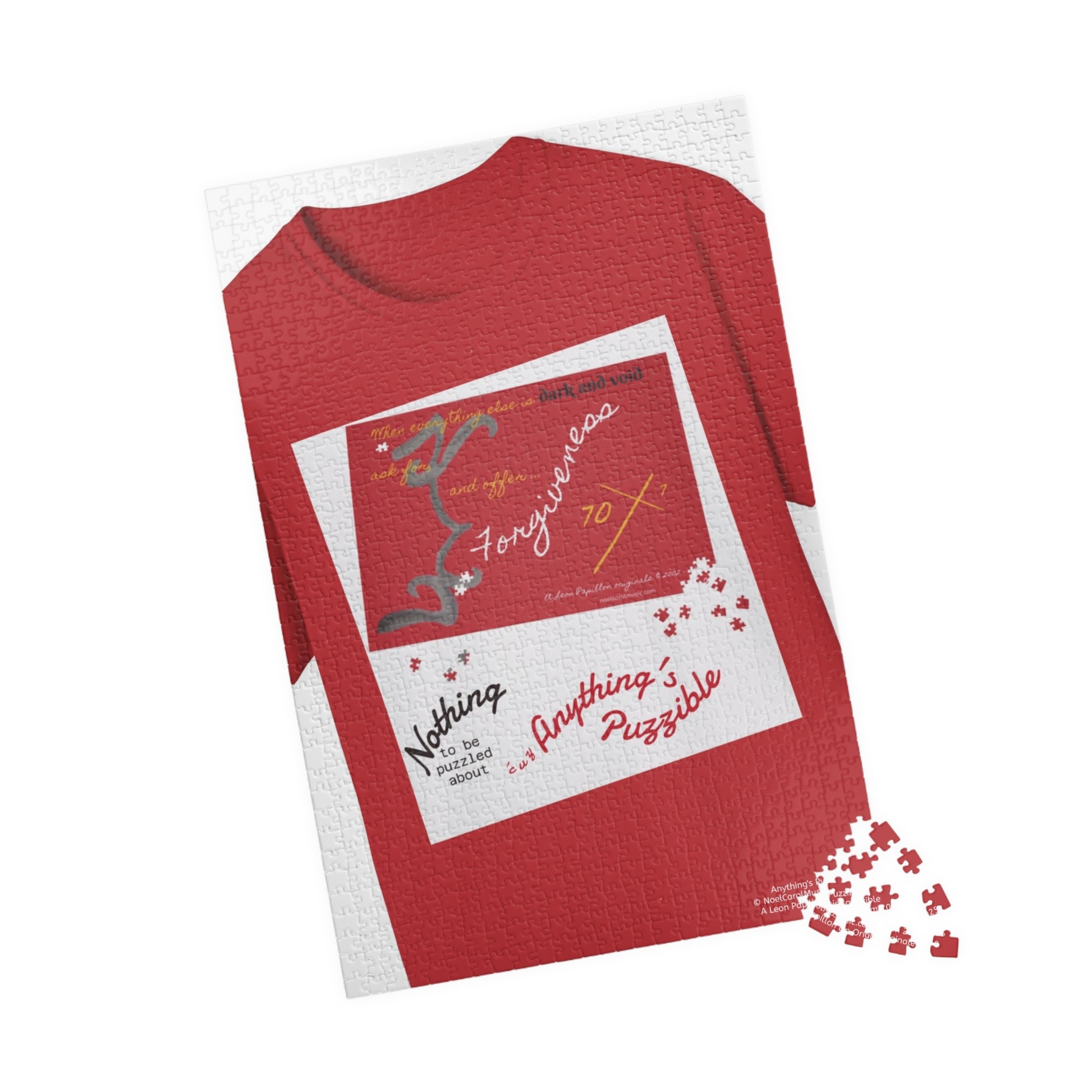 What started out as being a T-shirt with a puzzle on it, has since morphed into becoming a puzzle of a T-shirt with a puzzle on it. What's gonna be next? A T-shirt containing a mug with a puzzle of a puzzle of a T-shirt containing a T-shirt of a puzzle of a mug? Who knows what'll be next on the agenda. All we hope for the moment is that you'll have as much fun piecing them all together as we're having designing them . So don't be puzzled, 'cuz Anything's Puzzible.