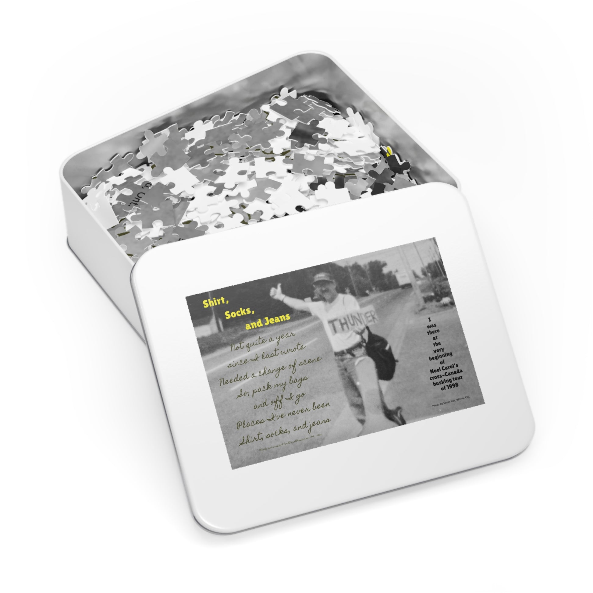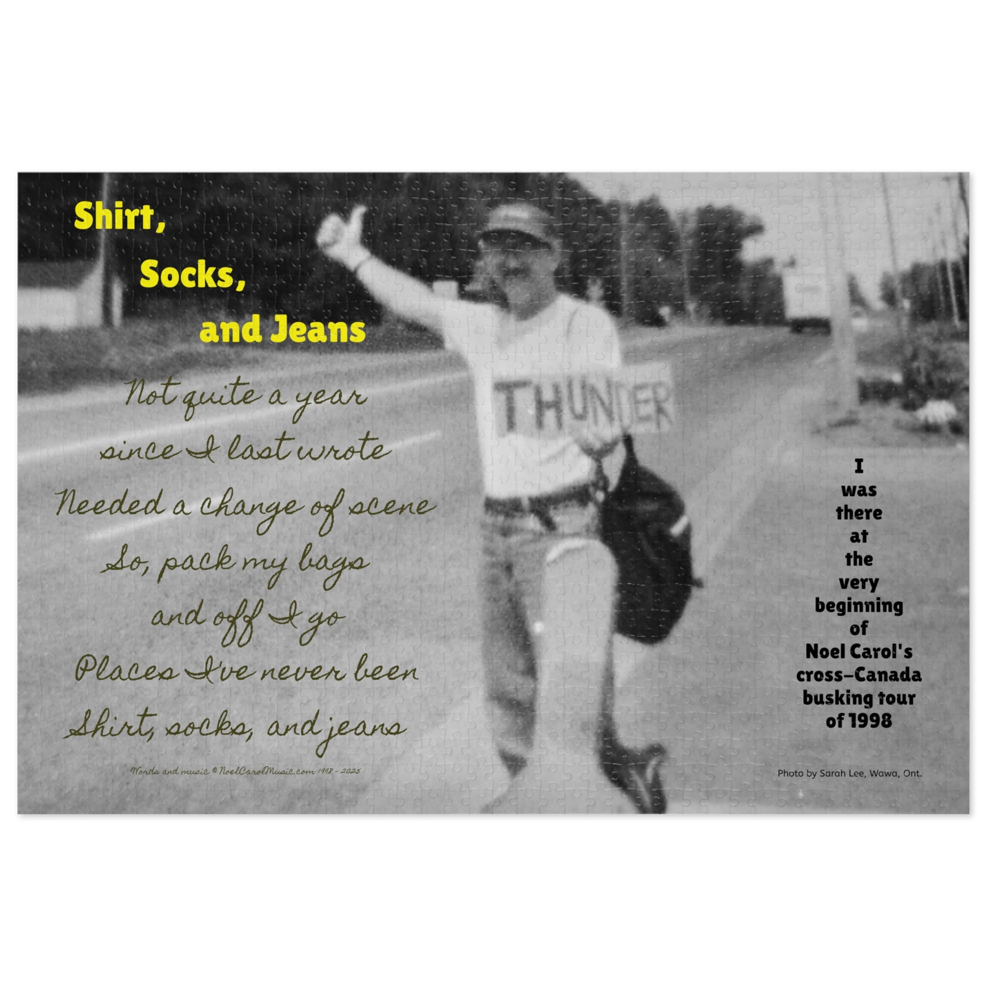 Shirt, Socks, and Jeans Puzzle # 1 - I was there at the very beginning of Noel Carol's cross-Canada busking tour of 1998
