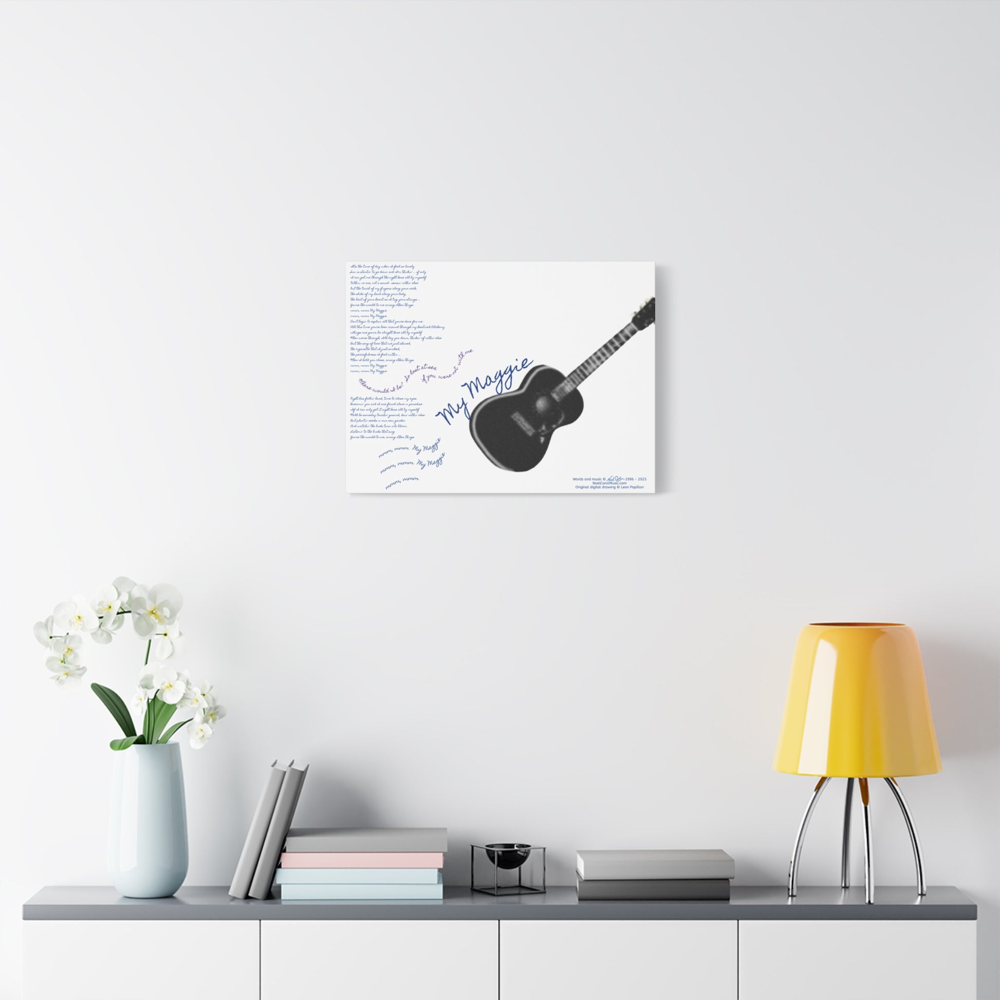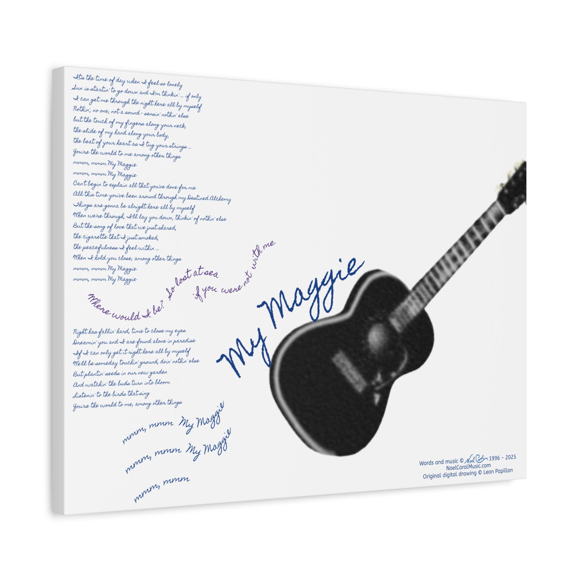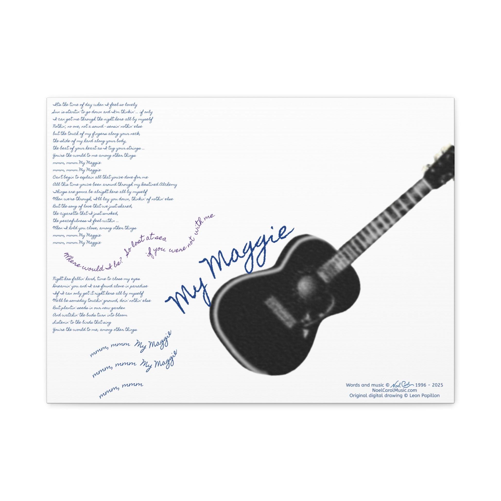 My Maggie c/w lyrics 24" x 18" x 1 1/4" canvas print - from puzzle to canvas - A Leon Papillon Originale # 2 White