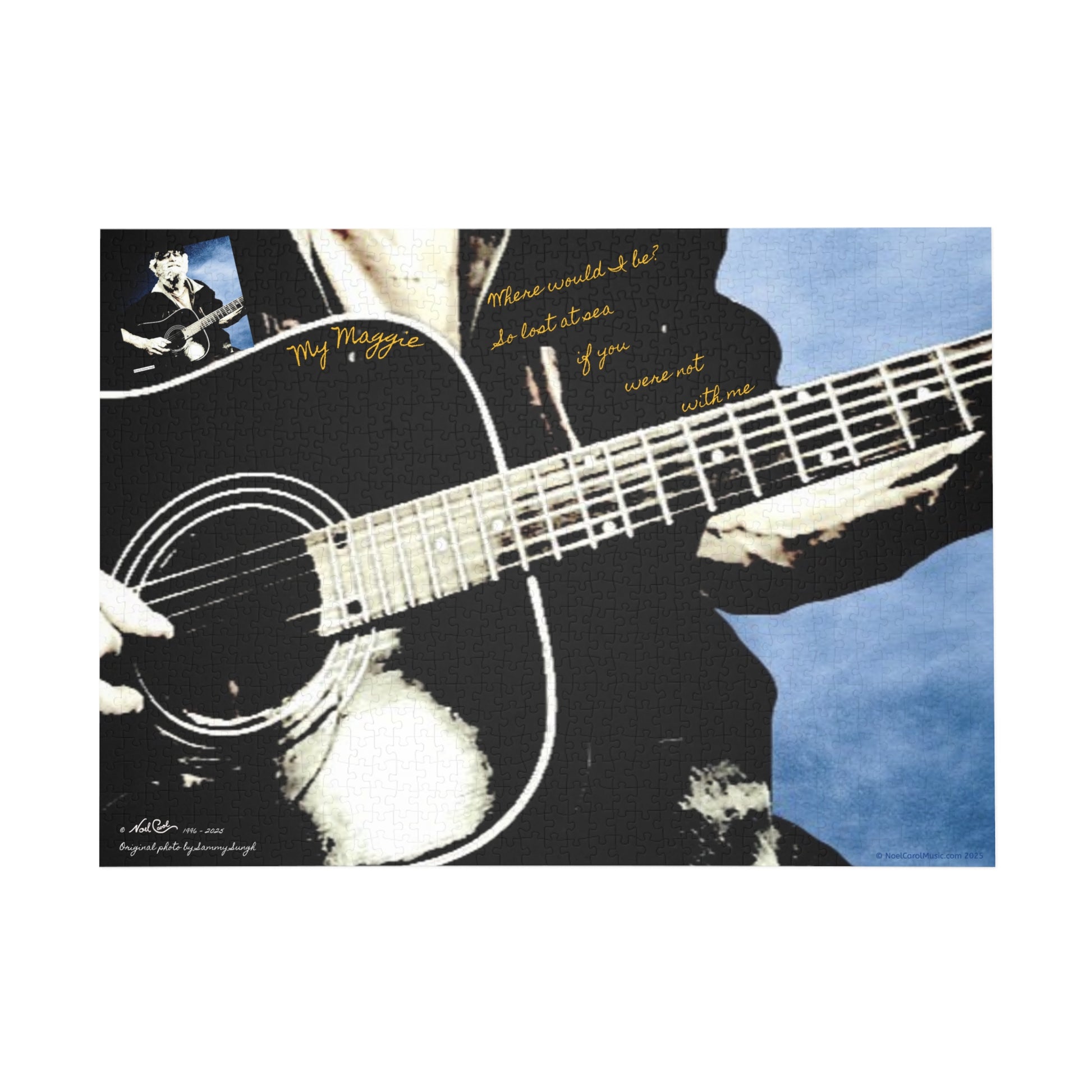My Maggie, a heartfelt love song to Noel's guitar. You can read the complete story of how the song came about in Chapter Eleven of LEFT UNREAD The Stories behind the Songs of Noel Carol. In fact, why not download My Maggie so that you can listen to the song while assembling this puzzle. Nothing to be puzzled about when it comes to supporting indie music and art.