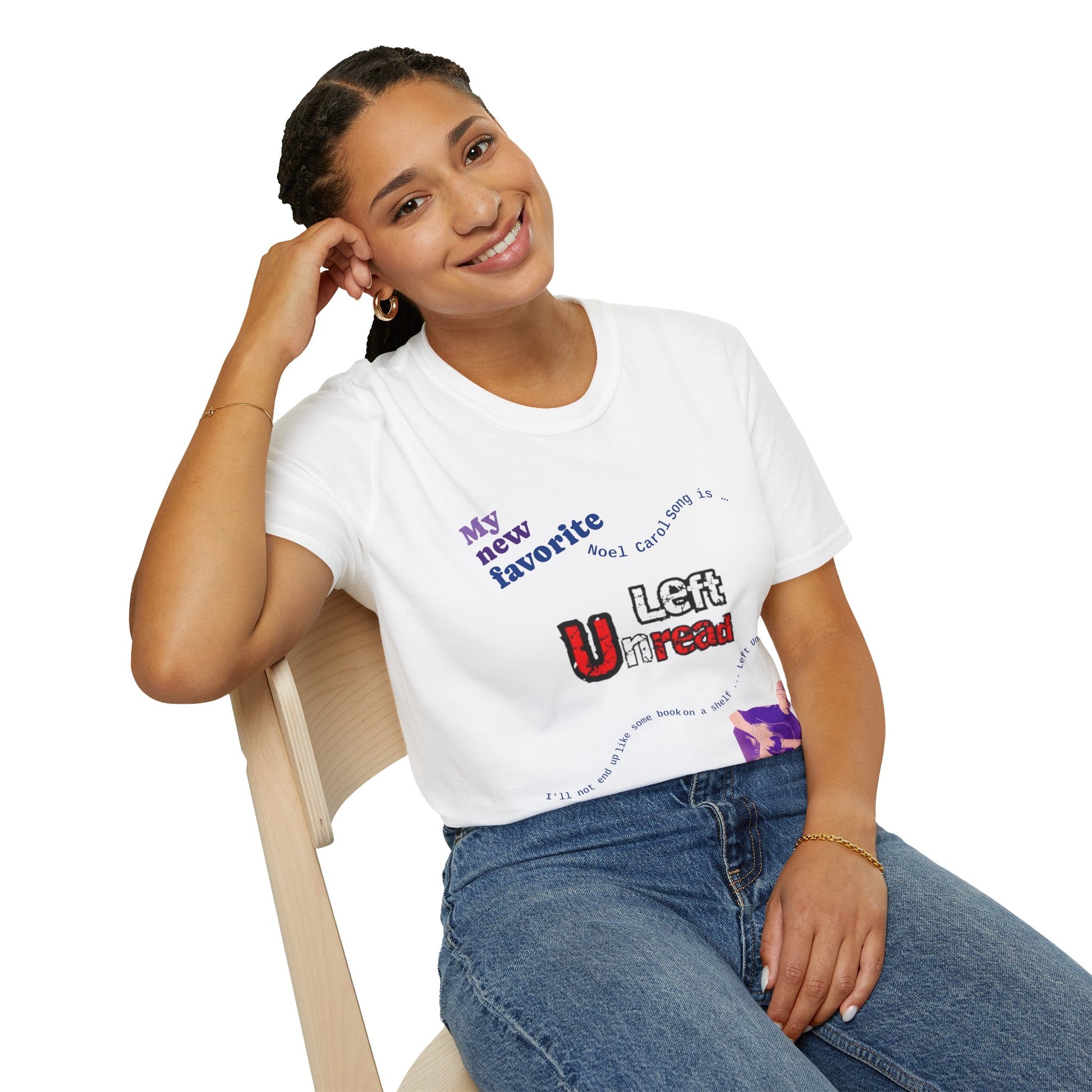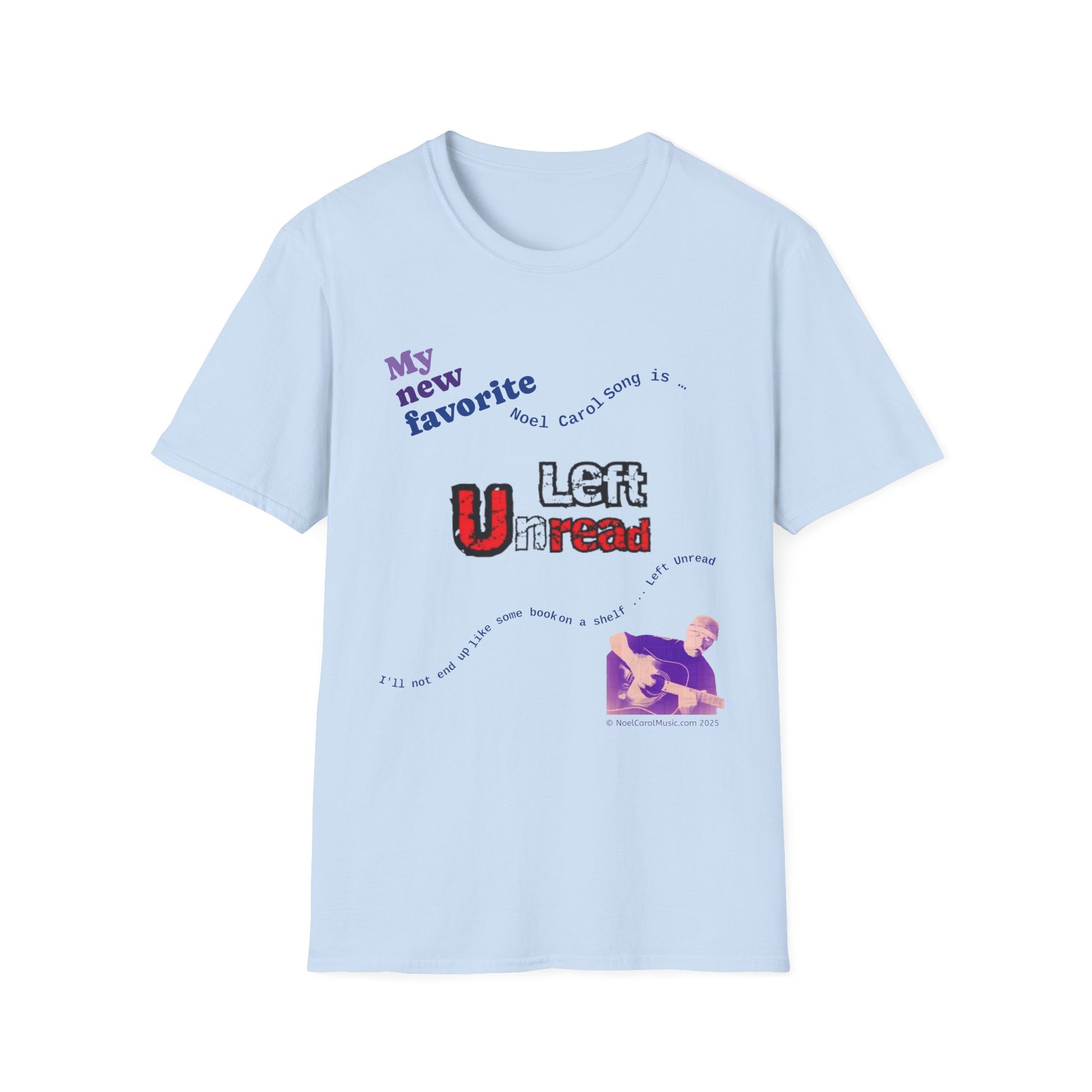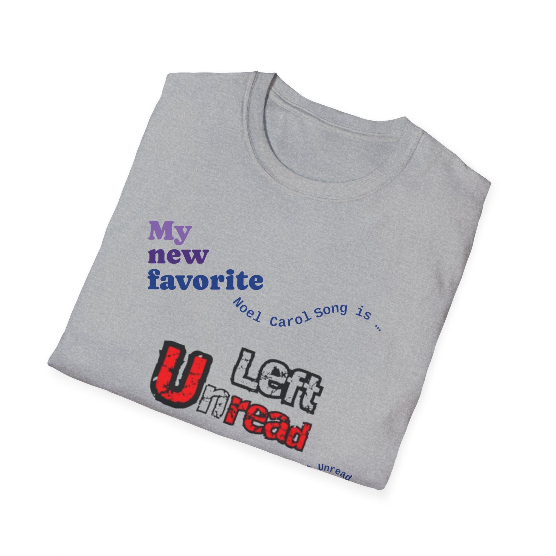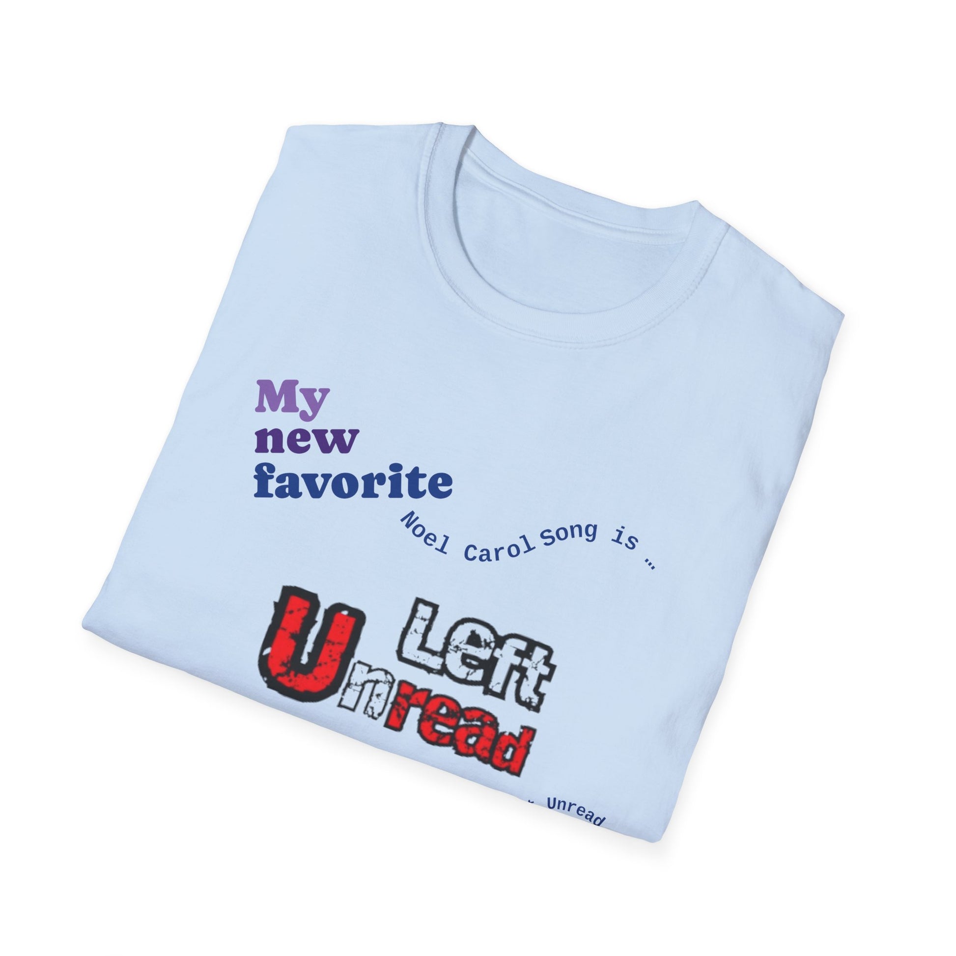We're creating a series of 10 selections of your Noel Carol Favorite Songs. If Left Unread is your favorite, wearing this T-shirt will be a nice reminder to you … perhaps inspiring you to sing the song to yourself throughout the day while wearing it.