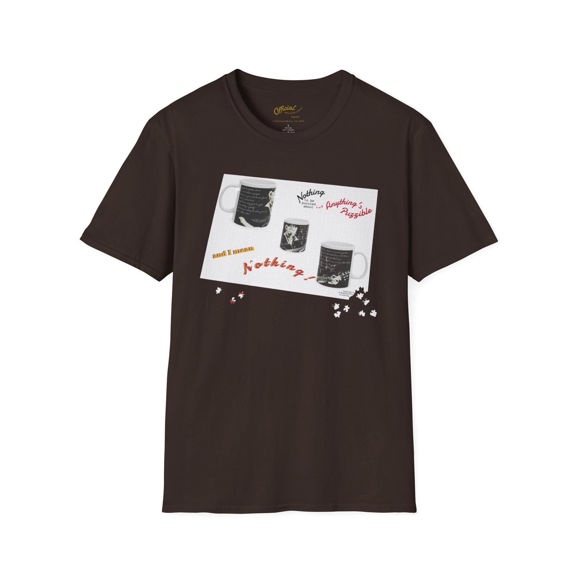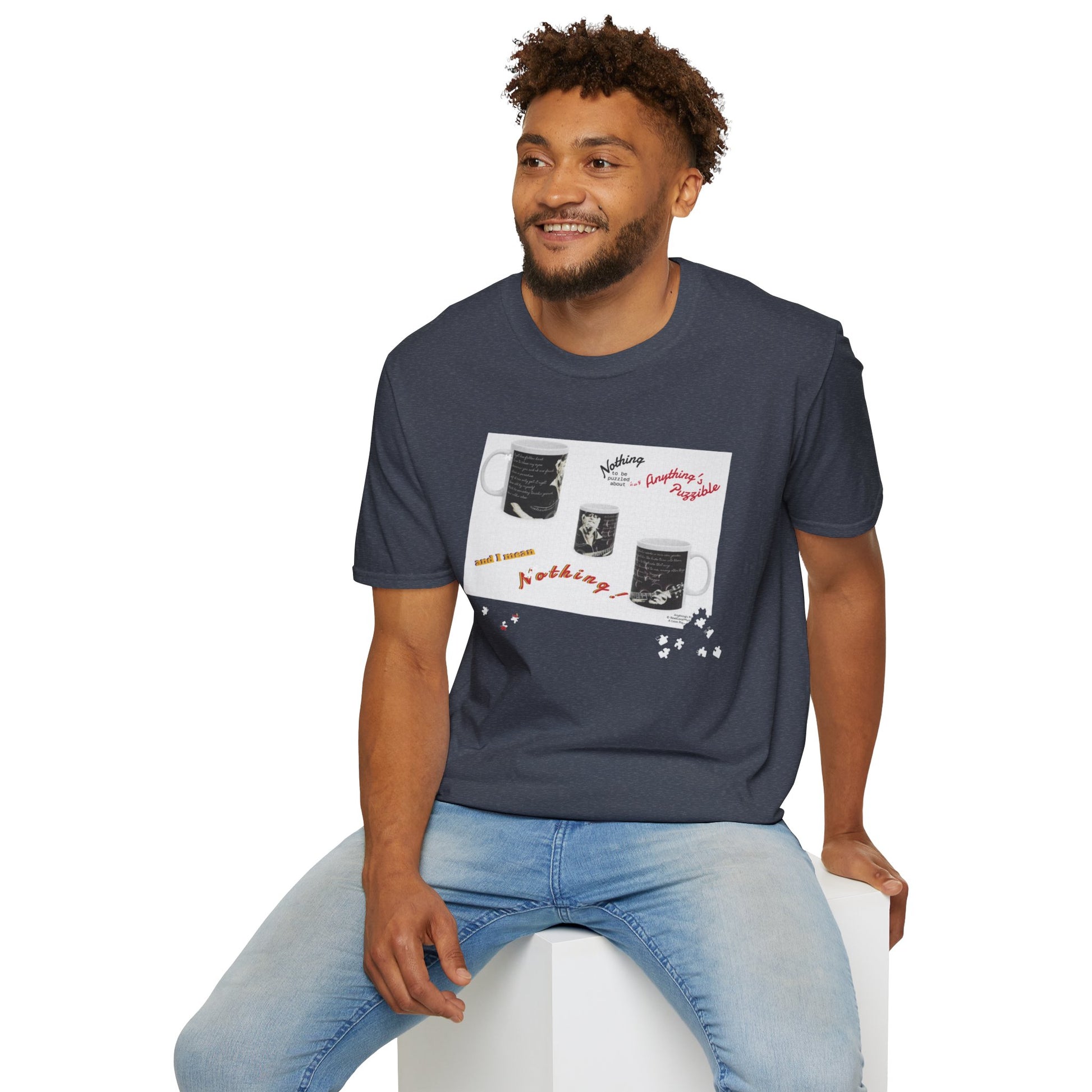 T-shirt of a puzzle of a MUG saying there's "Nothing to be puzzled about … and I mean Nothing!"
